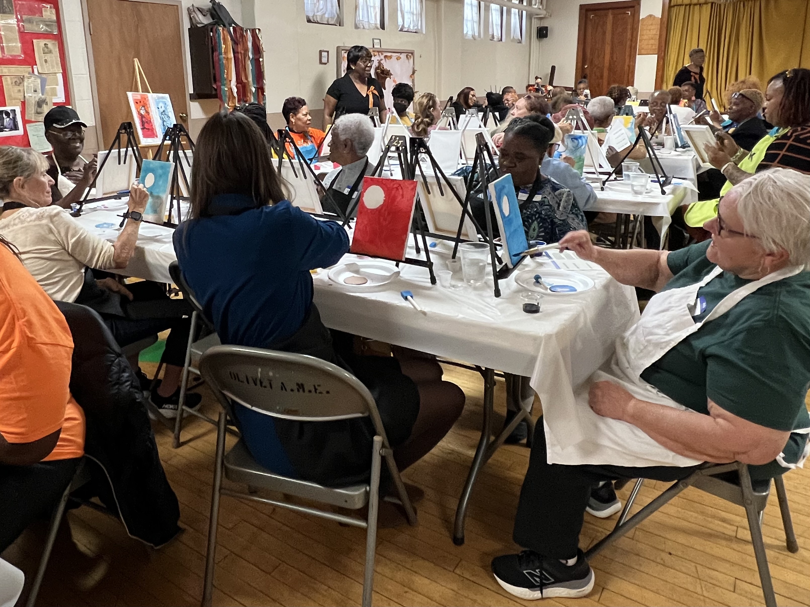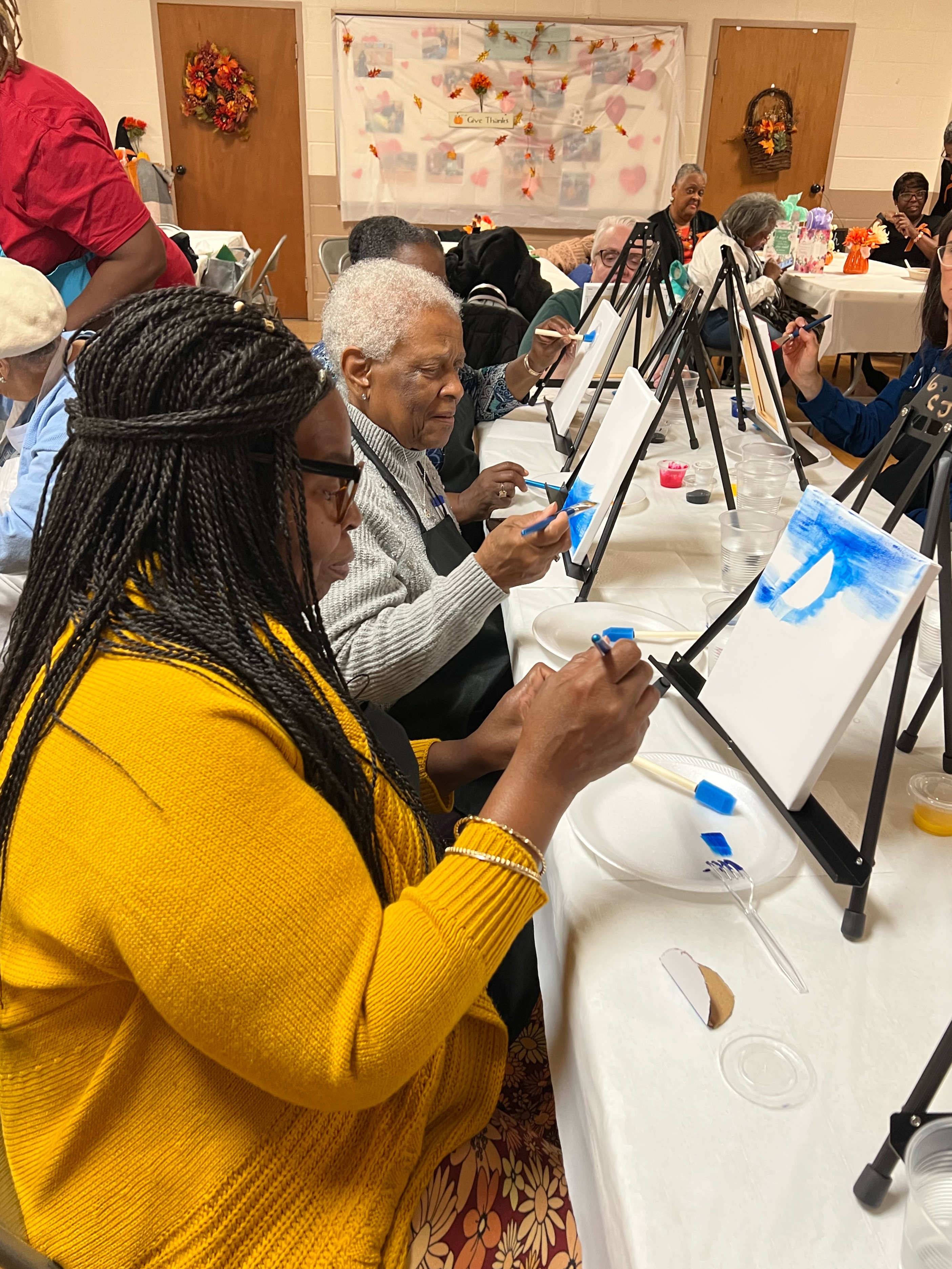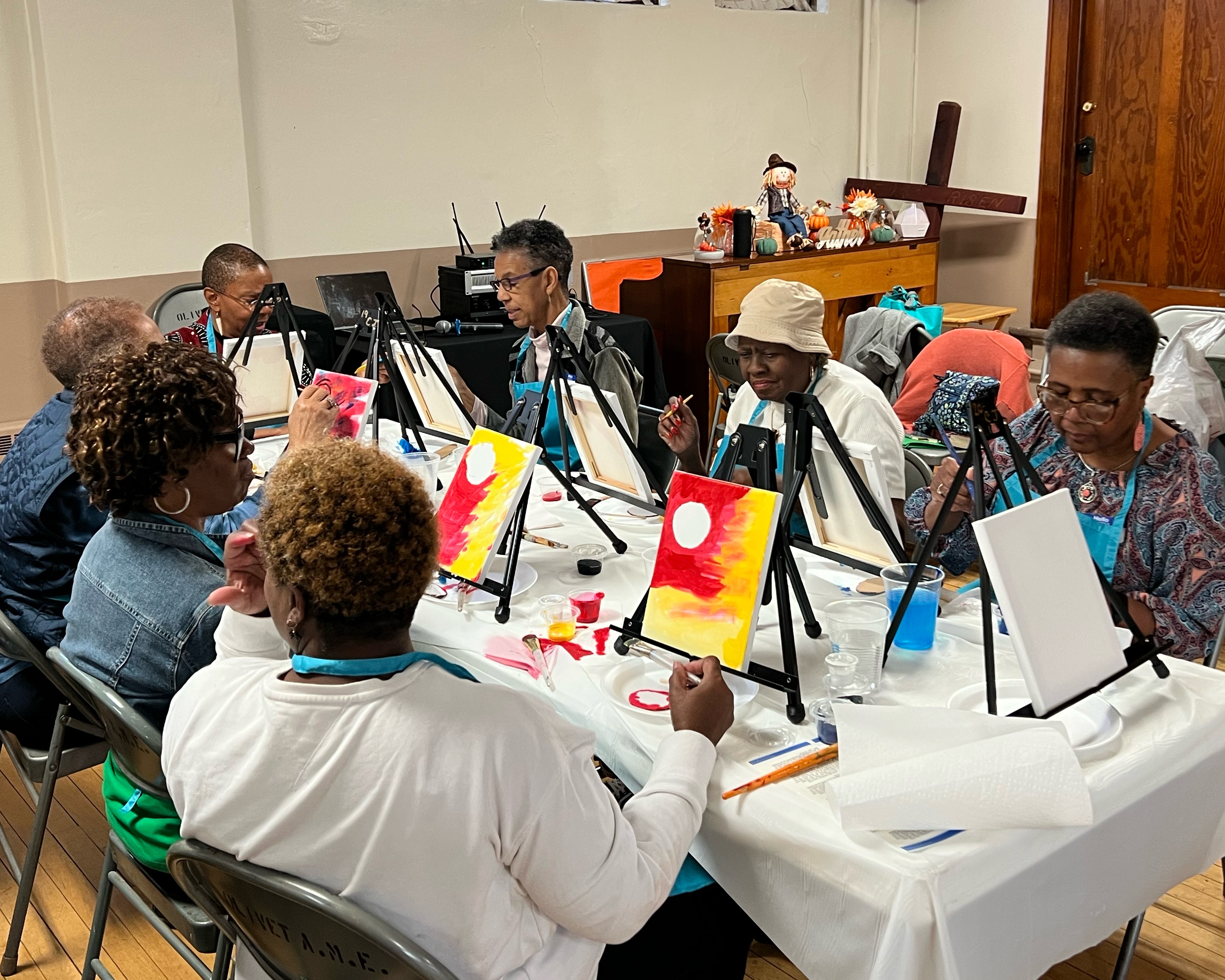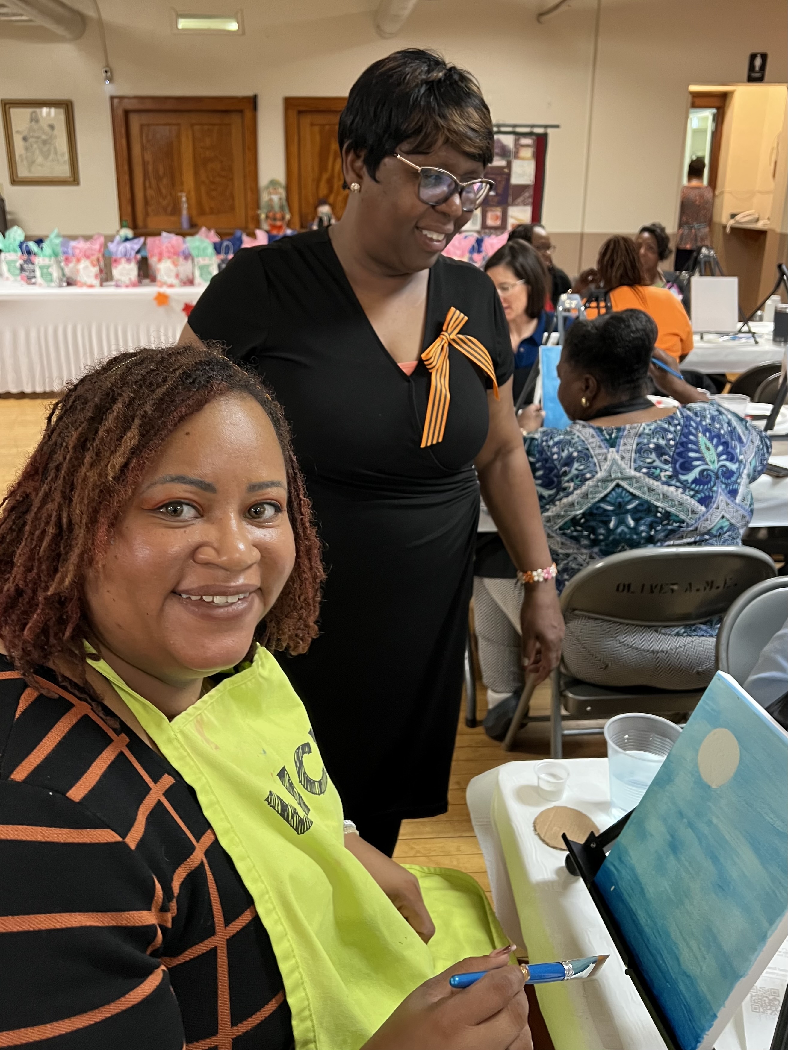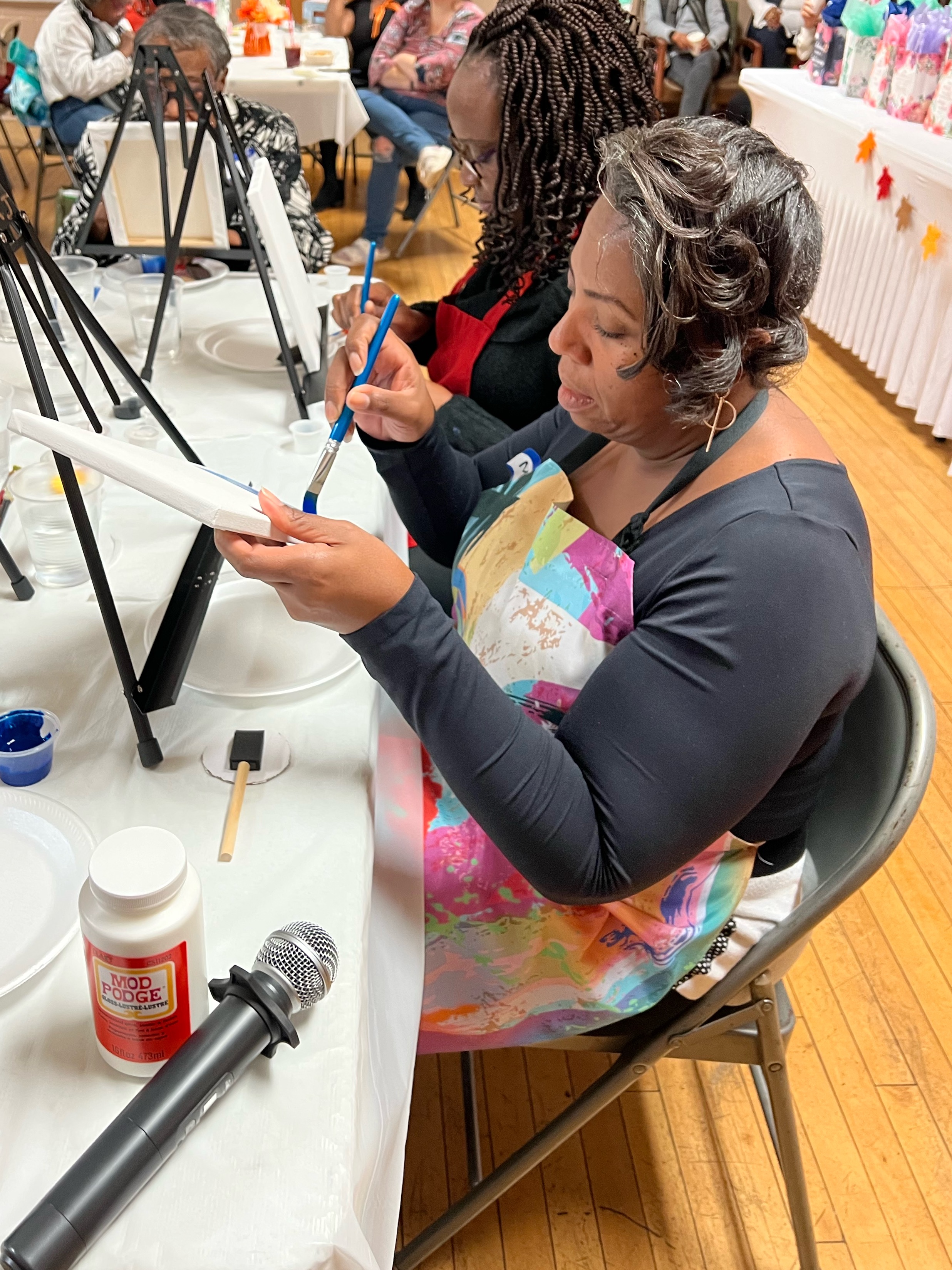 We began our morning with a continental breakfast, then prayed and meditated. A panel discussion centered on faith, life, and the unique challenges women face. Afterwards, we focused on our mental and physical health, enjoyed lunch, and expressed our creativity through painting and faith-based activities.